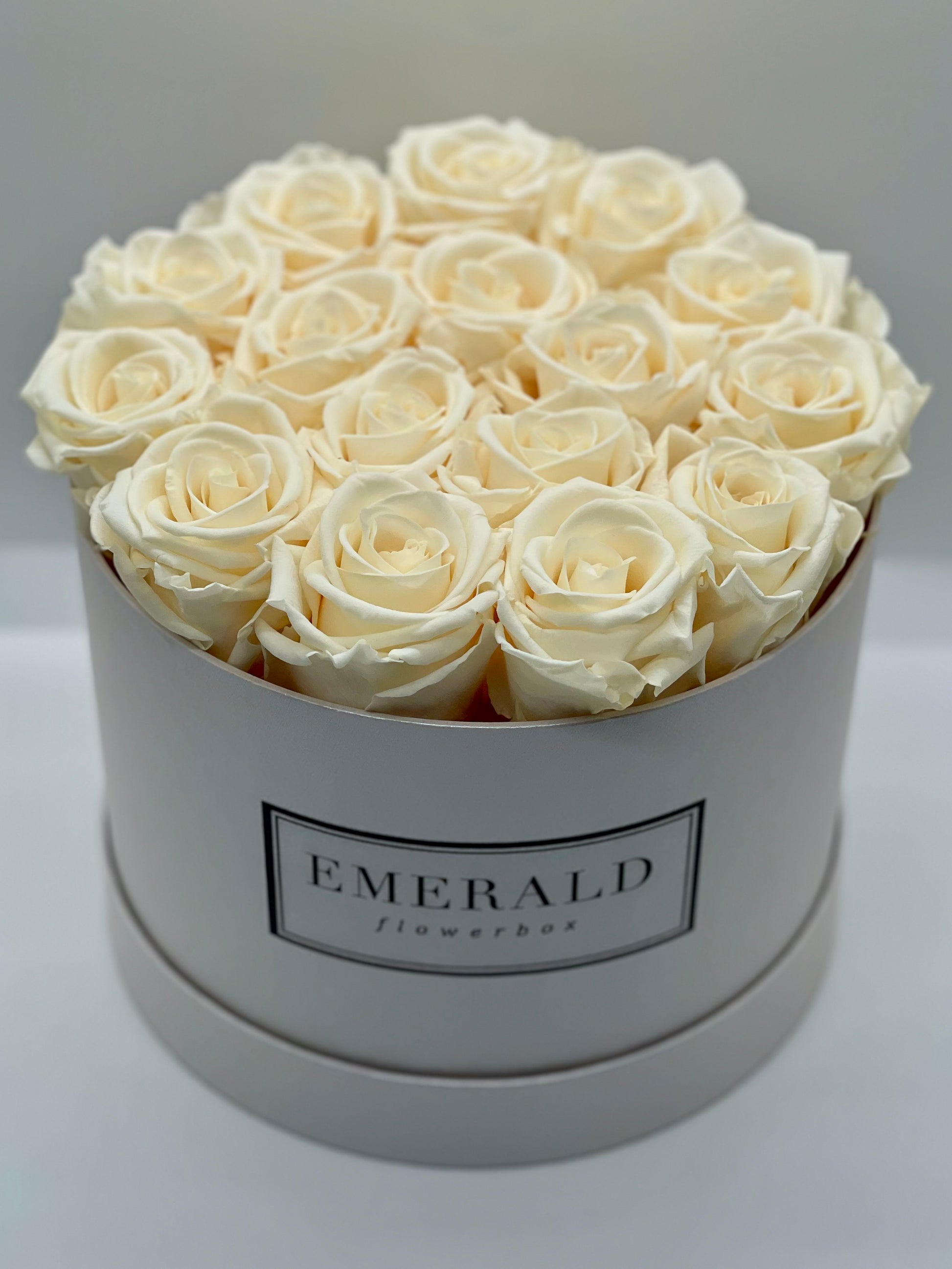 Bouquet Premium de Rosas Preservadas Champanhe feito cuidadosamente à mão numa luxuosa Flowerbox da nossa marca.