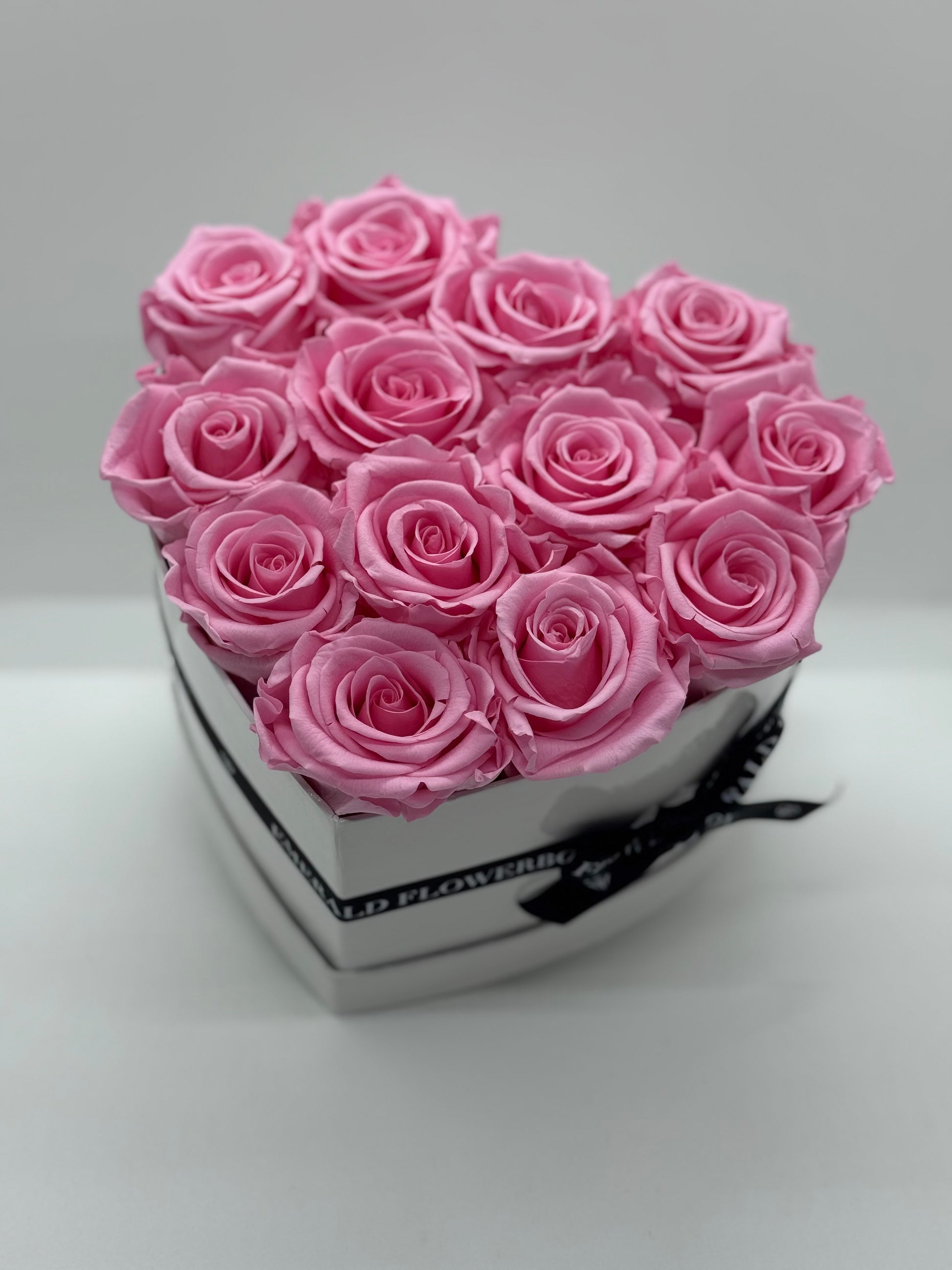 Esta Flowerbox em forma de coração contem rosas 100% naturais e preservadas, ou seja, com durabilidade até 3 anos.